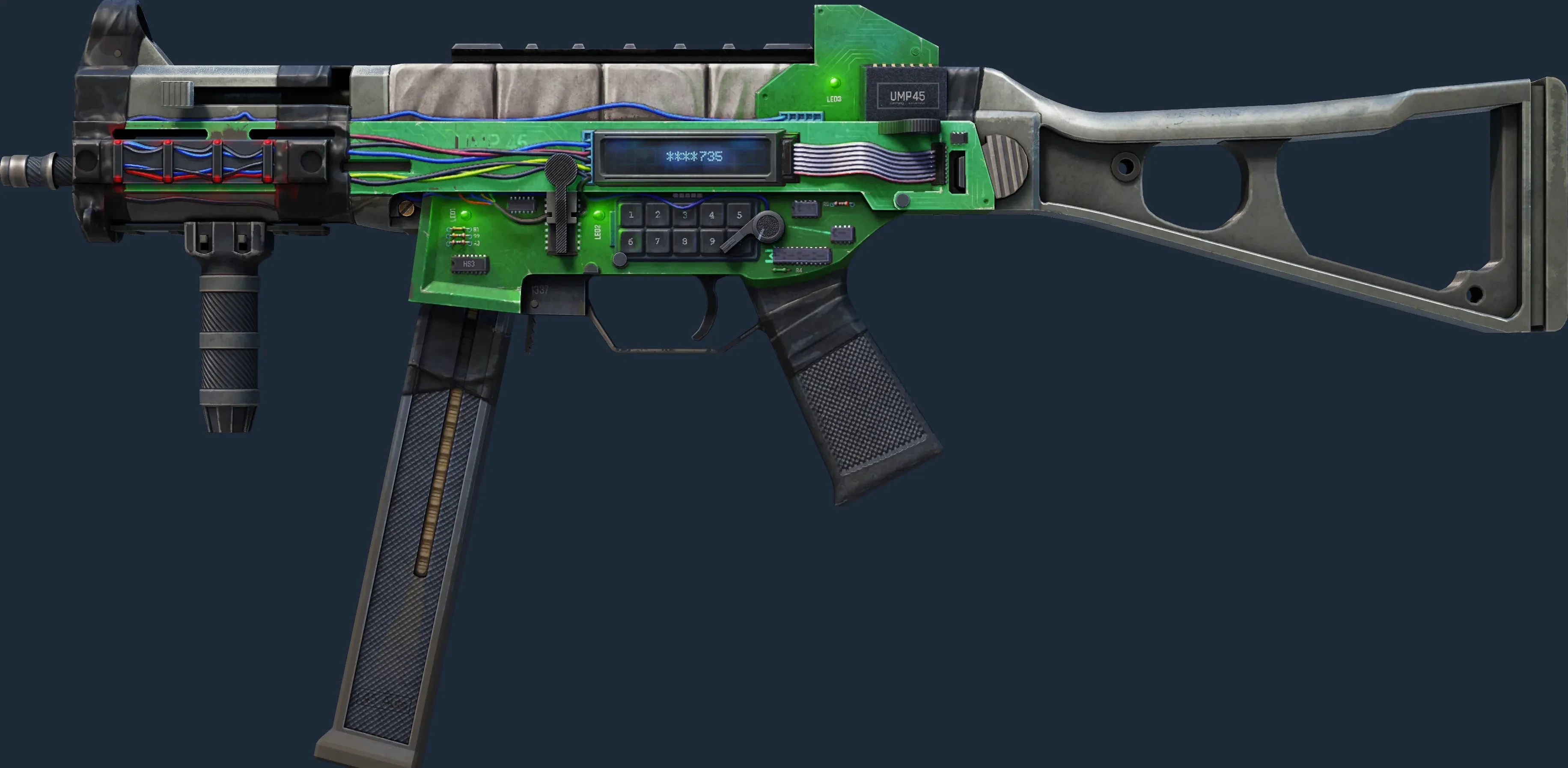 The UMP-45 | Plastique is a Covert grade skin for the UMP-45 in Counter-Strike 2. It features a Custom Paint Job finish and was designed by Graff.