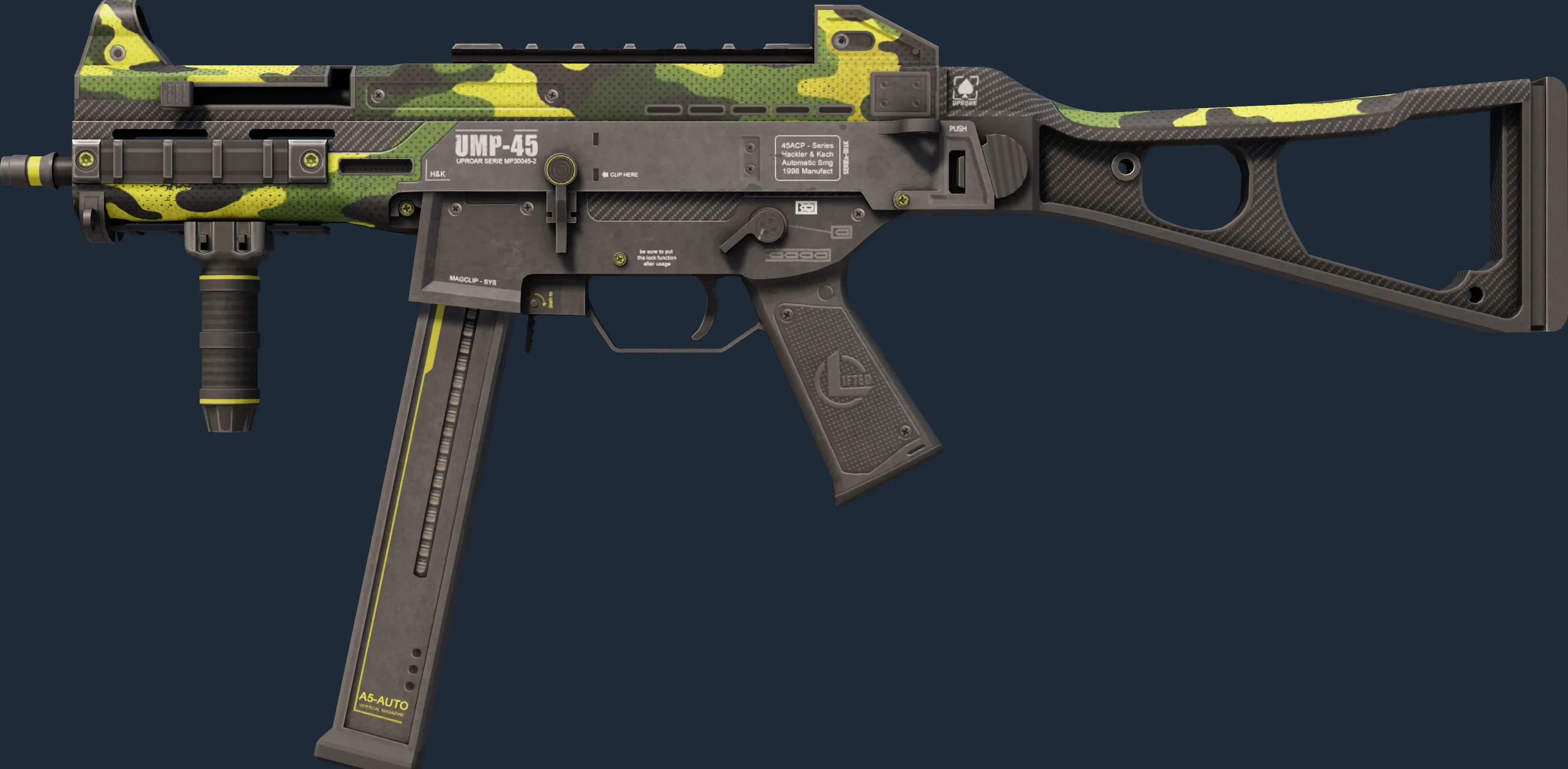 The UMP-45 | Riot is a Covert grade skin for the UMP-45 in Counter-Strike 2. It features a Custom Paint Job finish and was designed by M1nD.