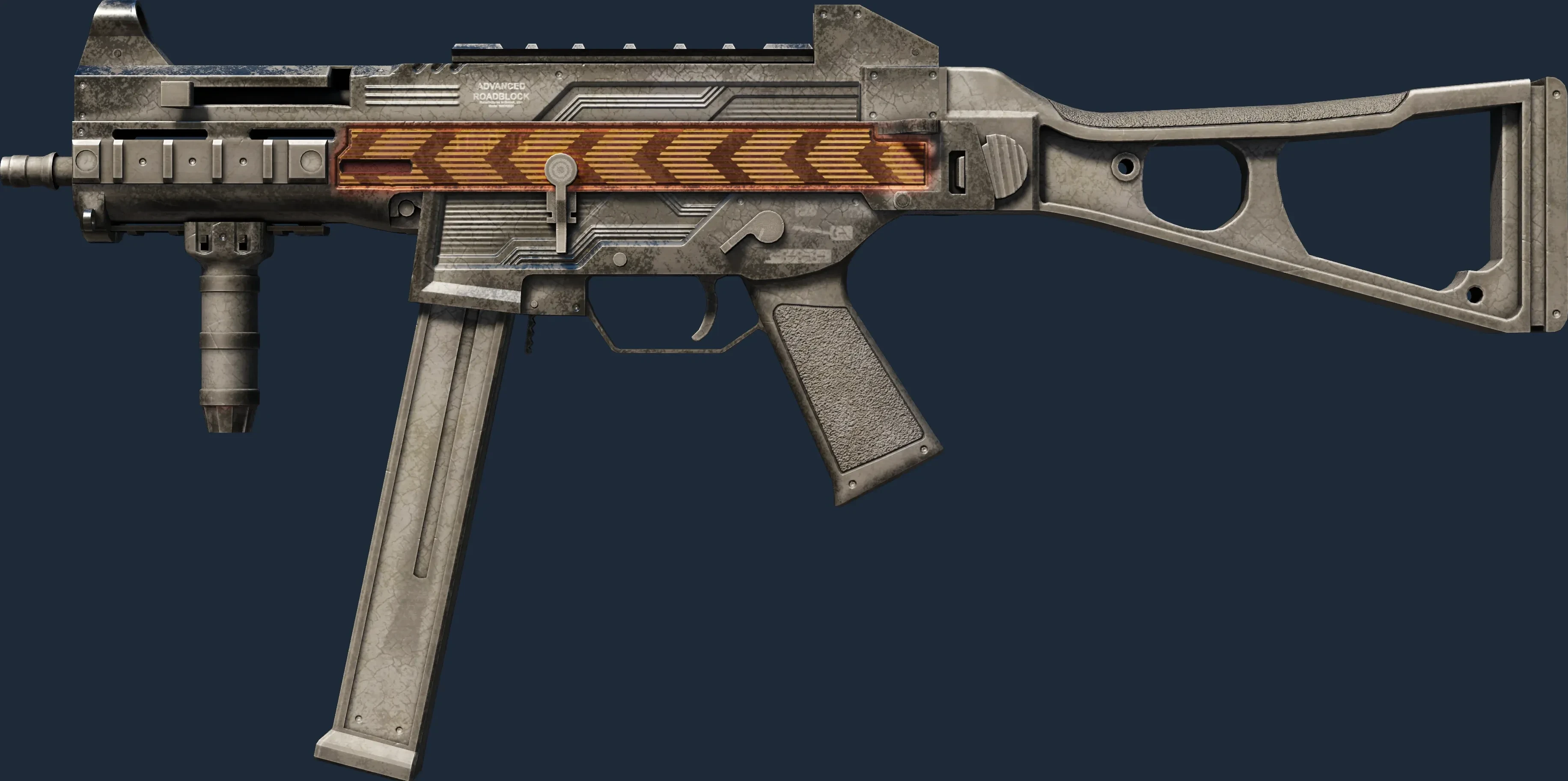 The UMP-45 | Roadblock is a Covert grade skin for the UMP-45 in Counter-Strike 2. It features a Custom Paint Job finish and was designed by Eschaton.
