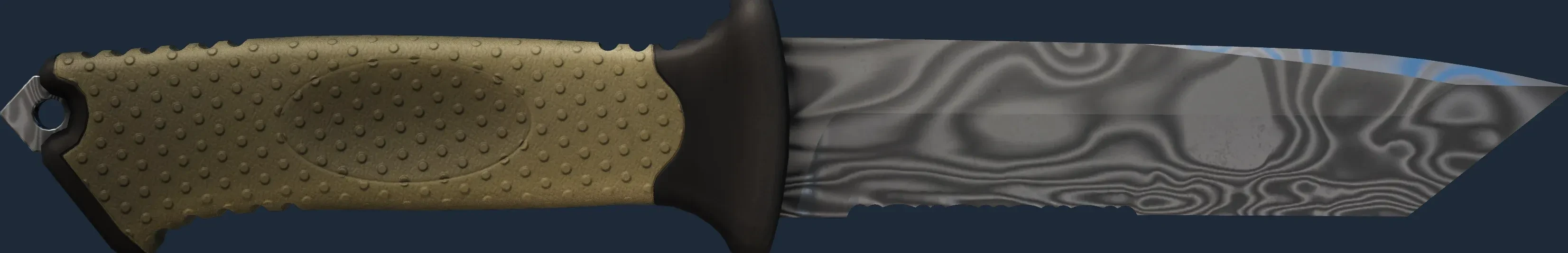 The Damascus Steel has a float value range from 0.00 to 1.00, making it available in 5 wear conditions: Factory New, Minimal Wear, Field-Tested, Well-Worn, Battle-Scarred.