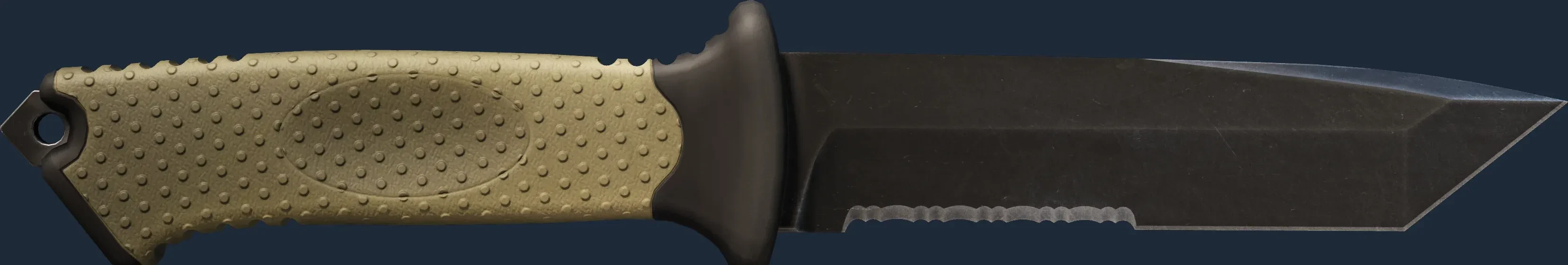 This tanto-style survival knife features a faceted blade and full tang, complete with impact pommel. No fuss, no moving parts - just a reliable blade that's ready to work. The raw material of the weapon shines in all of its beauty. Sometimes, no paint is the best choice.