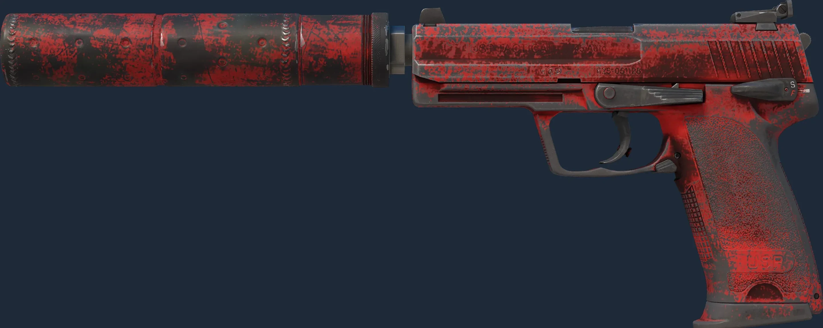 The USP-S | Bleeding Edge is a Covert grade skin for the USP-S in Counter-Strike 2. It features a Custom Paint Job finish and was designed by Valve.