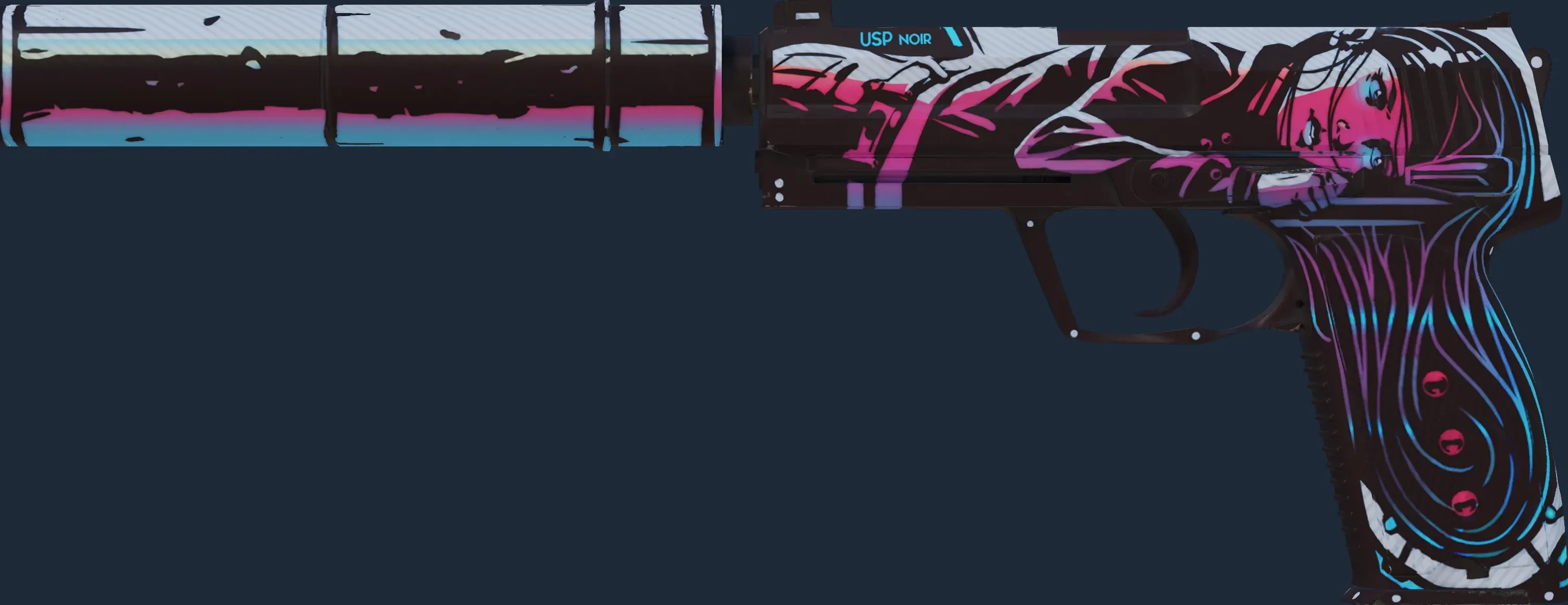 The USP-S | Neo Noir is a Covert grade skin for the USP-S in Counter-Strike 2. It features a Custom Paint Job finish and was designed by donschi.