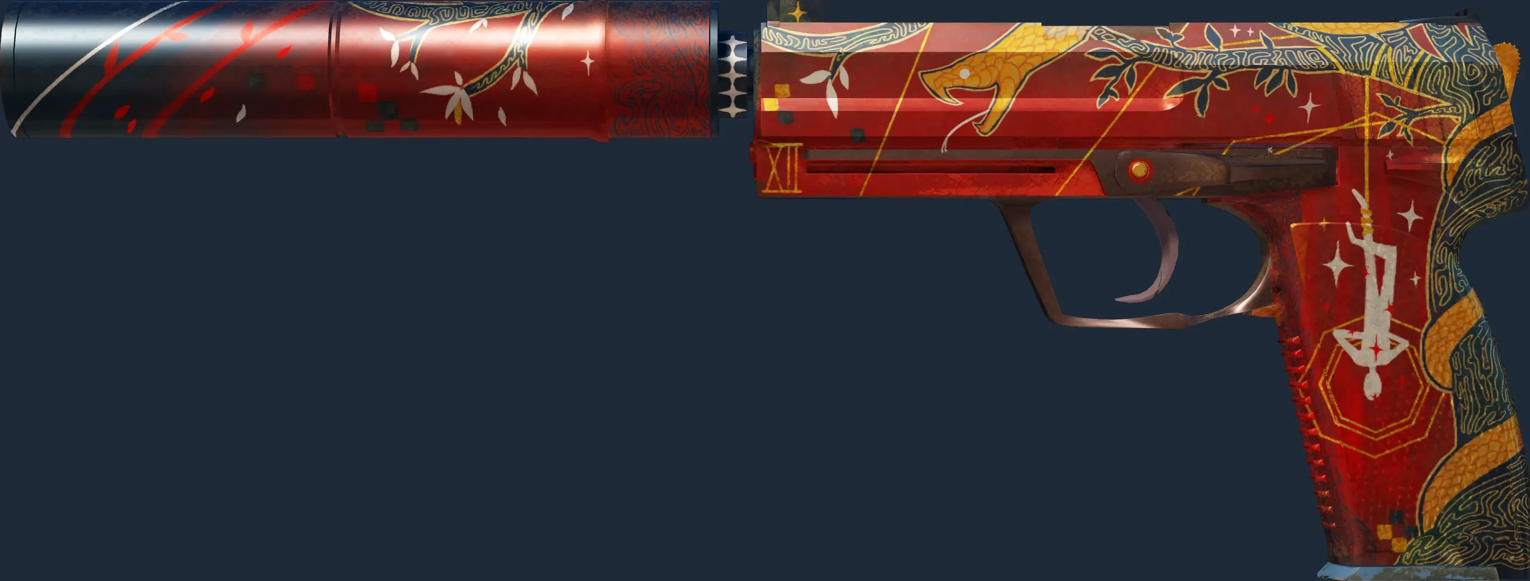 The USP-S | The Traitor is a Covert grade skin for the USP-S in Counter-Strike 2. It features a Custom Paint Job finish and was designed by Zaphk.