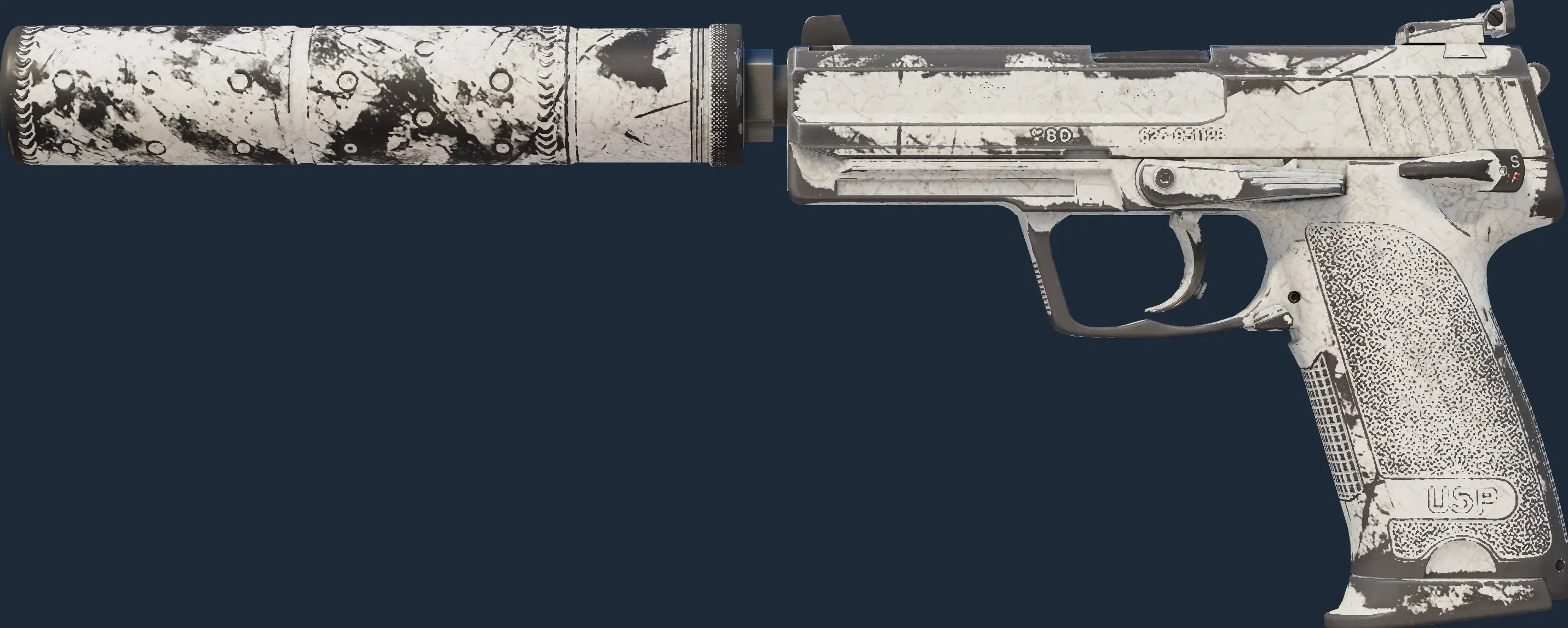 The USP-S | Whiteout is a Covert grade skin for the USP-S in Counter-Strike 2. It features a Custom Paint Job finish and was designed by Valve.