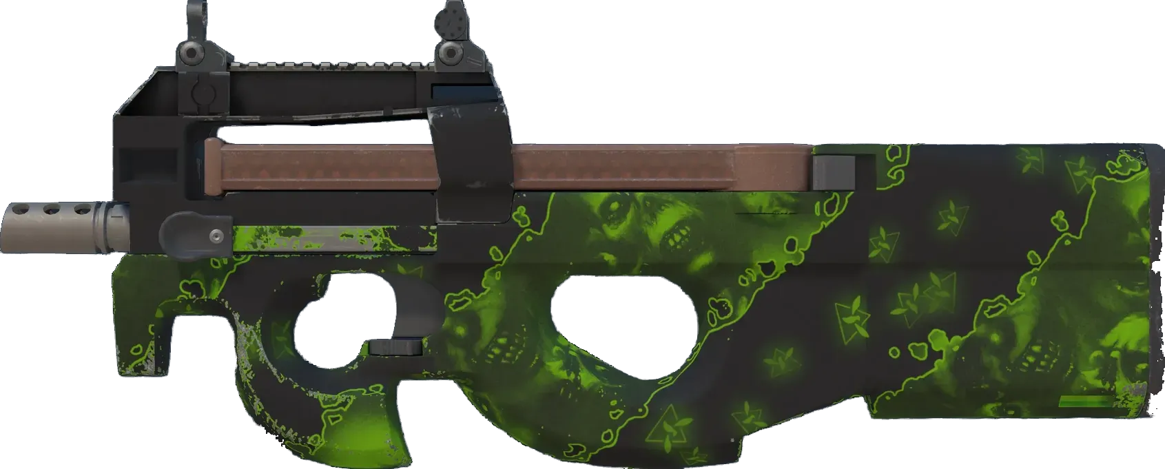 The P90 | Virus is a Classified rarity skin.
