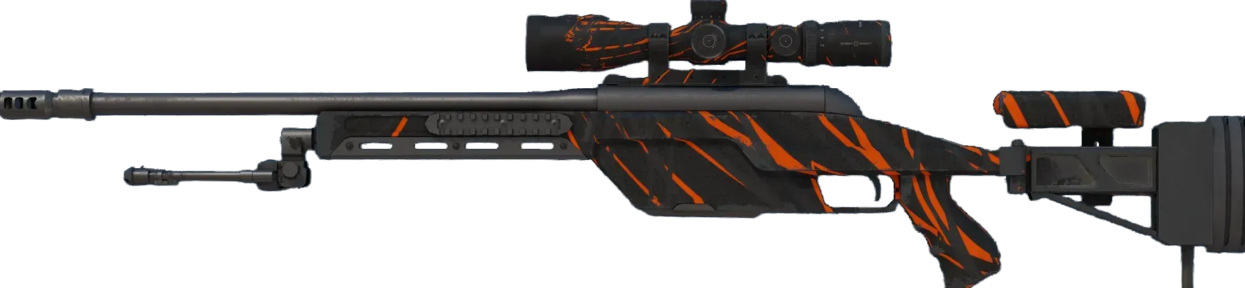 The SSG08 bolt-action is a low-damage but very cost-effective sniper rifle, making it a smart choice for early-round long-range marksmanship. It has been painted using a hydrographic in a claw mark pattern.