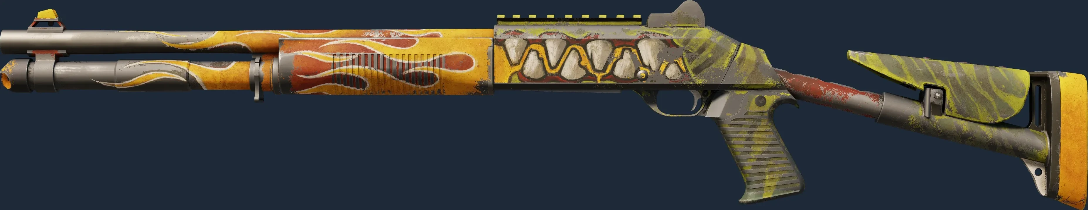The XM1014 | Incinegator is a Covert grade skin for the XM1014 in Counter-Strike 2. It features a Custom Paint Job finish and was designed by EGO DEATH.