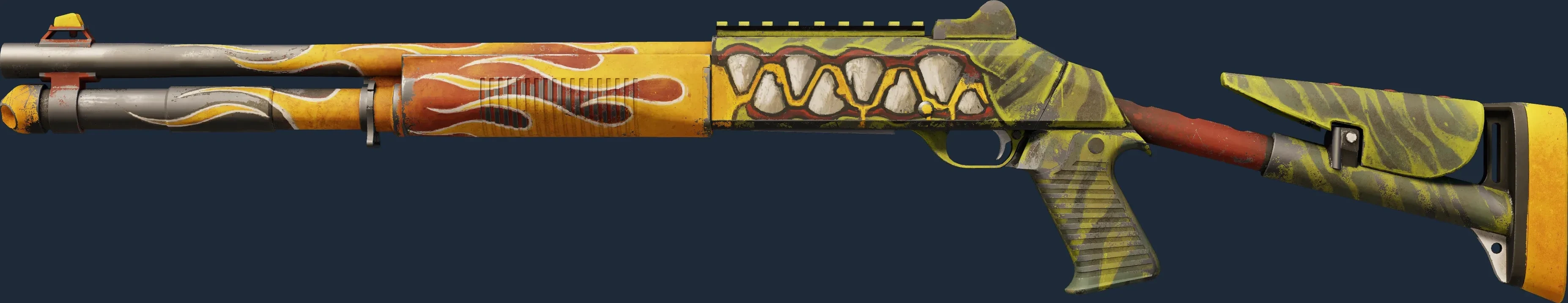 The XM1014 | Incinegator is a Covert grade skin for the XM1014 in Counter-Strike 2. It features a Custom Paint Job finish and was designed by EGO DEATH.