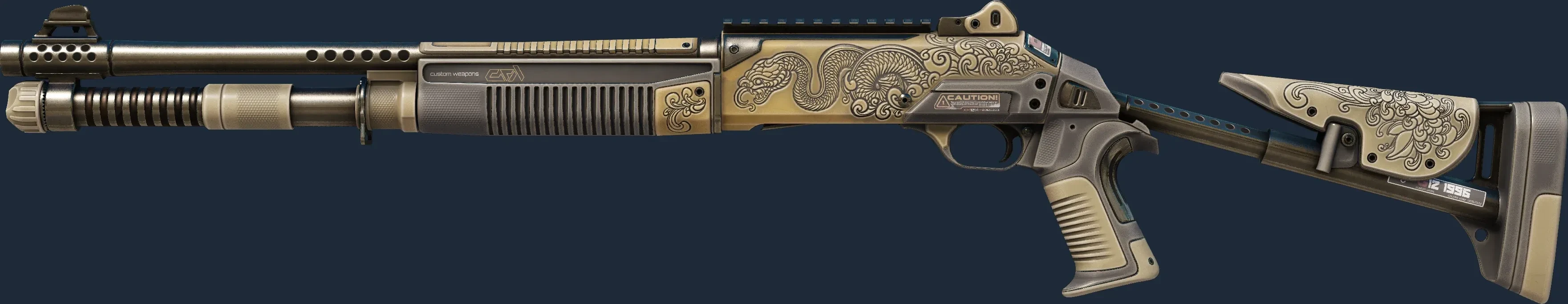 The XM1014 is a powerful fully automatic shotgun that justifies its heftier price tag with the ability to paint a room with lead fast. A snake has been custom painted atop a gold-colored base in a style inspired by the Japanese tattoo art style Irezumi. _Snakes represent wisdom and prophecy, two words which best describe XM1014 users_